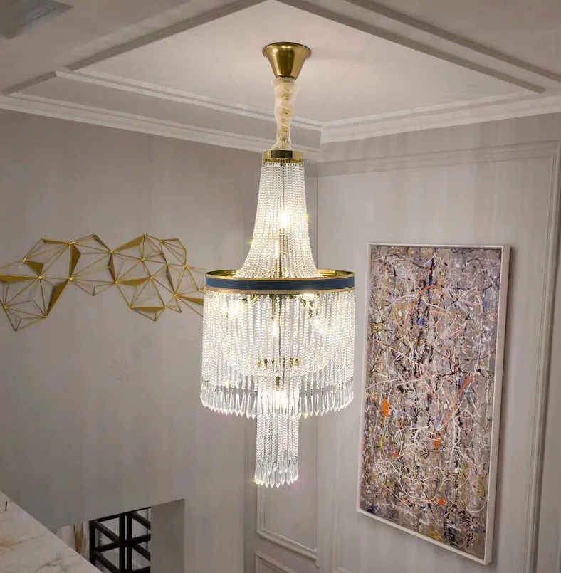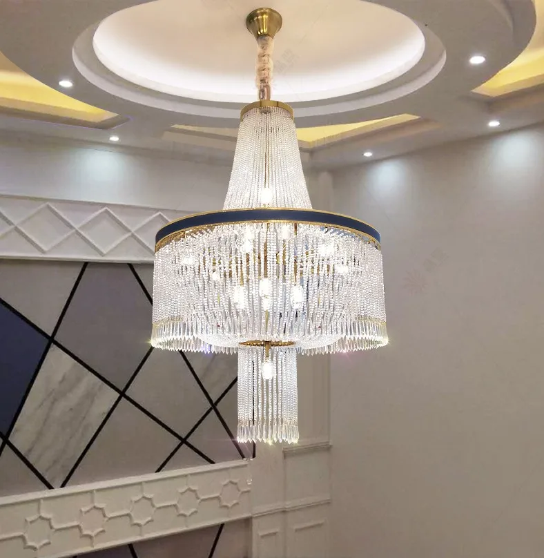 Product Name: 近代クリスタル大シャンデリア高級ヴィラのリビングルーム中空クラッドスパイラル階段クリスタル装飾シャンデリア