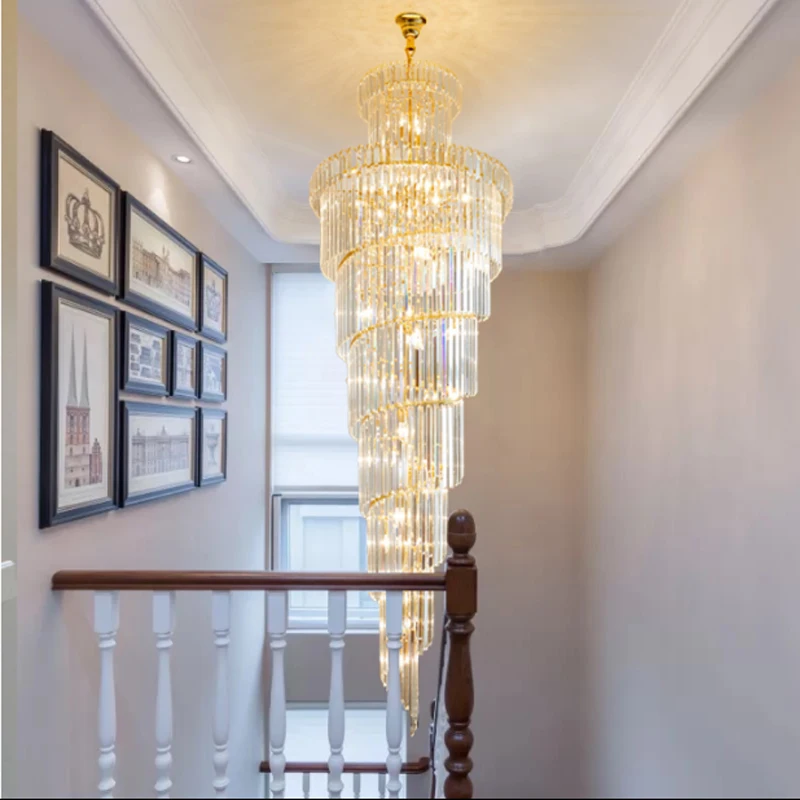 Special Offer デュプレックスヴィラスパイラル階段シャンデリアロングクリスタルシャンデリア照明モダンなリビングルーム豪華な大型金クリスタル照明器具 Discount (10%OFF) Today!