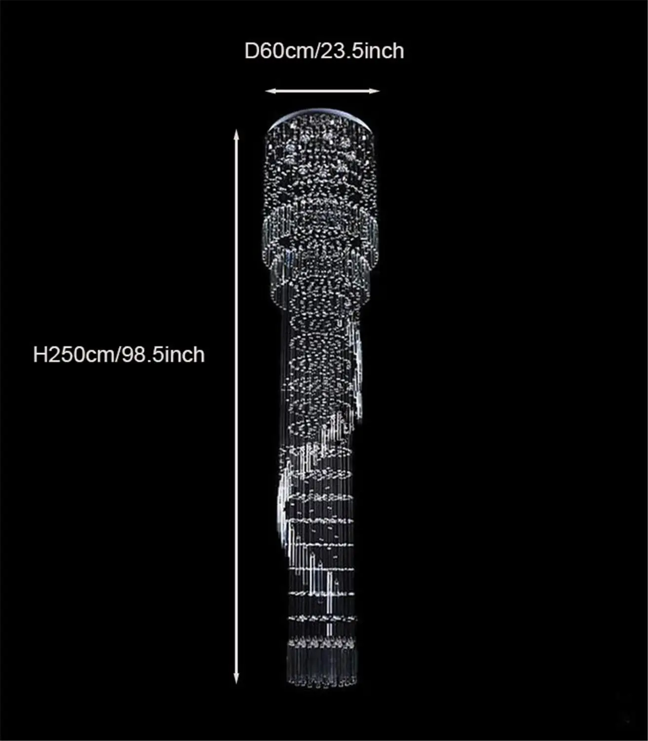 Product Name: D60 * H250cmロングスパイラル階段ライト大型ledクリスタルシャンデリアランペホテルロビーライト階段の照明器具