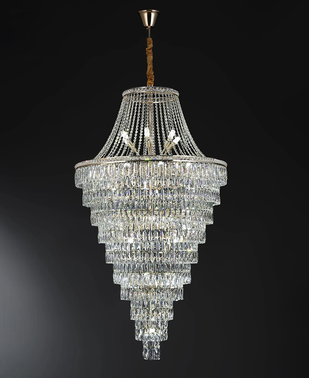 Product Name: 二重床高級クリスタルビッグシャンデリアのリビングルームスパイラル階段ヴィラ装飾シャンデリア