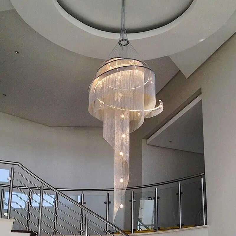 Product Name: ポストモダン大シャンデリアロングシャンデリア照明展示ホールゴールデンスパイラル階段ランプ