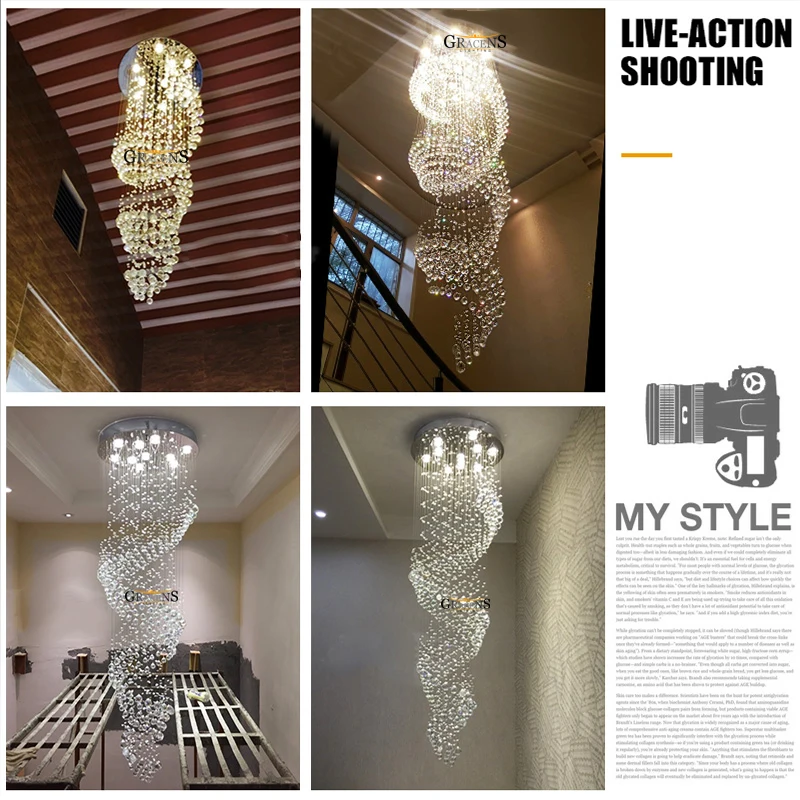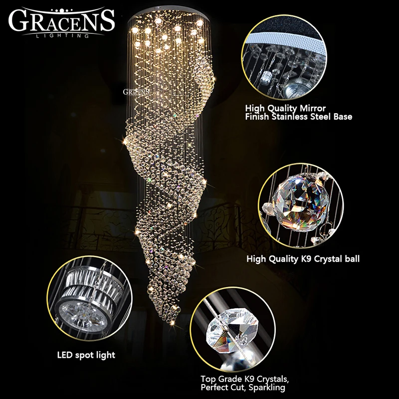Special Offer 豪華なクリスタル天井照明器具ロングスパイラルフラッシュマウントK9のシャンデリアの照明階段玄関ヴィラホテルのロビー Discount [NEW!!] Today!