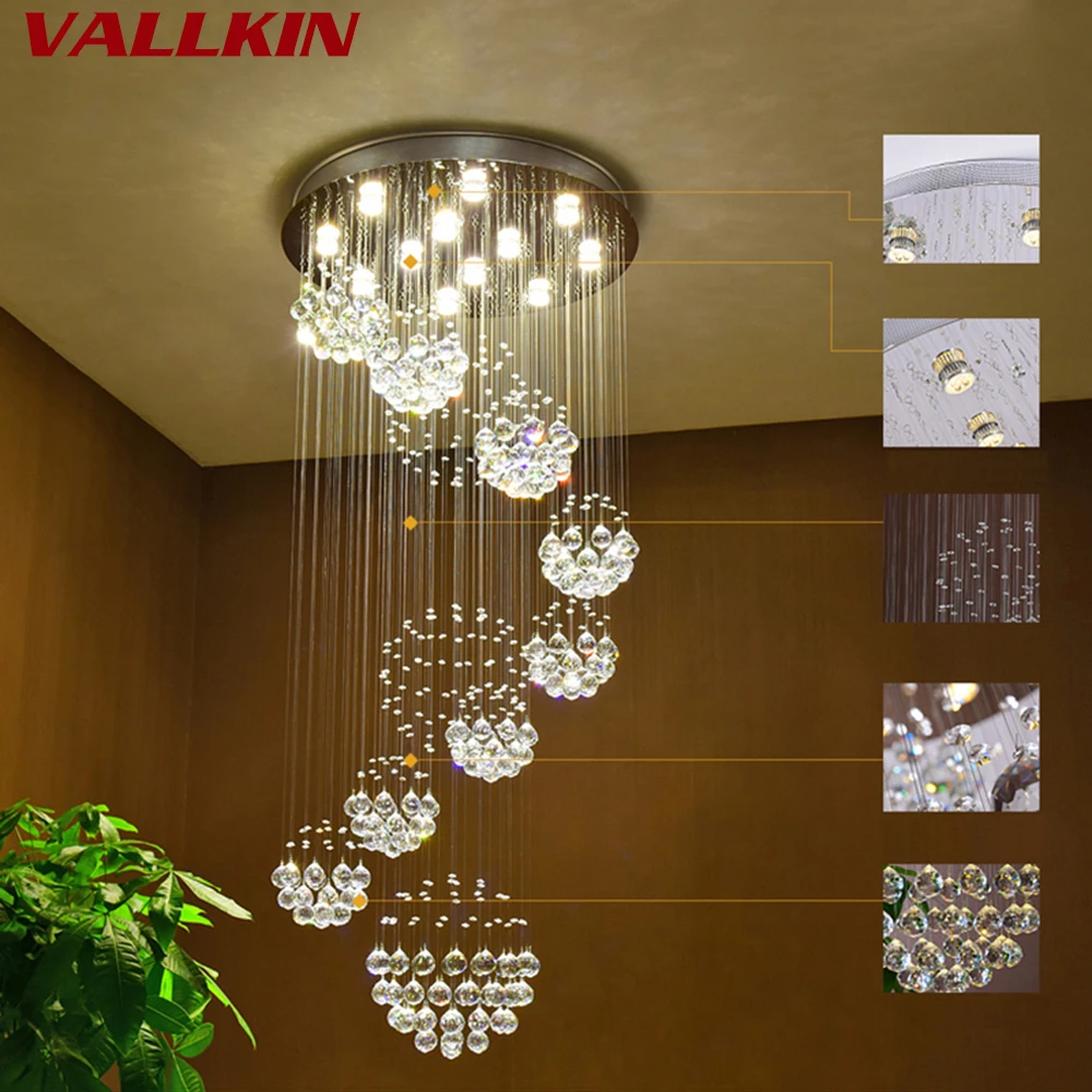Product Name: 現代の Led クリスタルシャンデリアランプ高級 Led クリスタルシャンデリア天井取付屋内スパイラルのための階段廊下