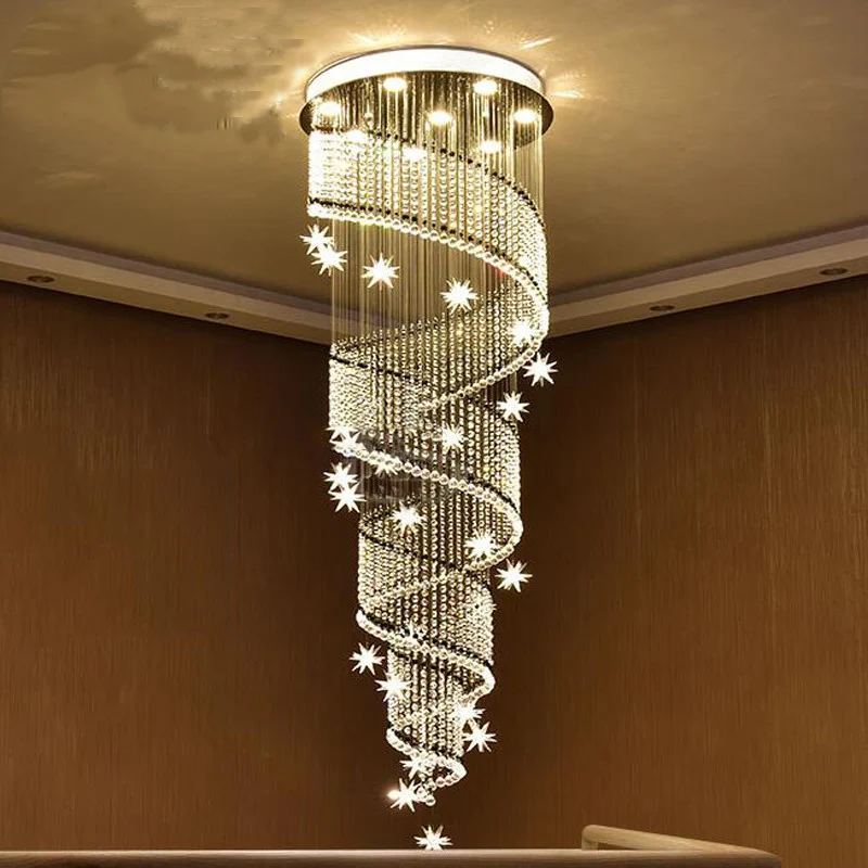 Special Offer 現代デュプレックススパイラル階段天井シャンデリア照明ムーンロングクリスタルシャンデリアホールぶら下げラインランプ Discount (5%OFF) Today!