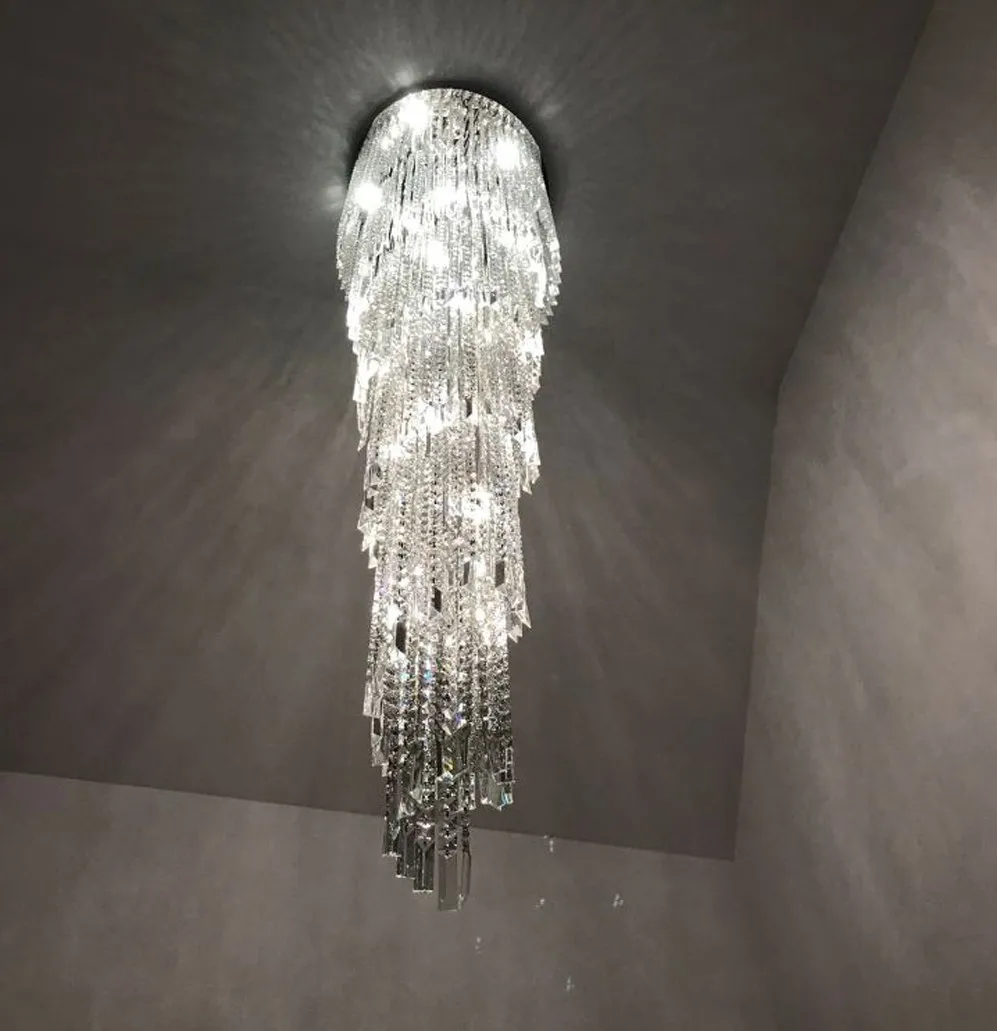 Product Name: モダンロングスパイラルシャンデリアクリスタルランプDia60 * H300cm光沢階段照明器具