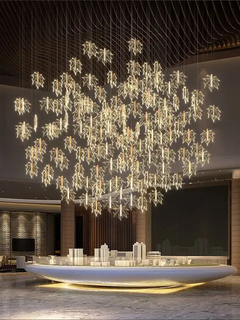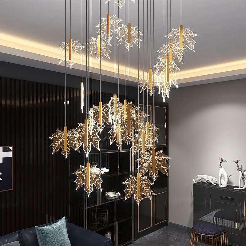 Special Offer 現代の階段のシャンデリアホテルロビーヴィラスパイラル階段シャンデリアデュプレックス建物ロビーカエデの葉シャンデリアランプ Discount (10%OFF) Today!