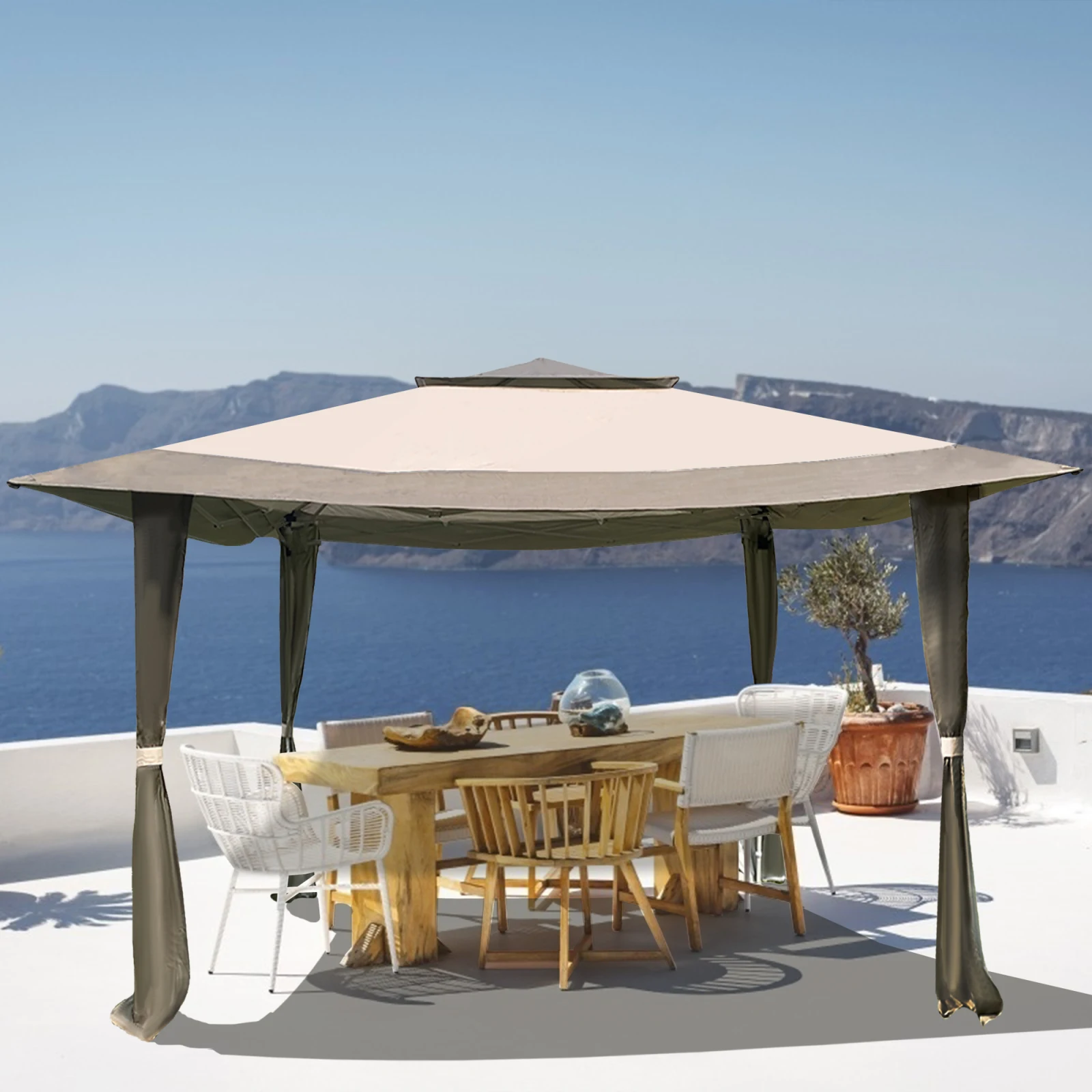 Special Offer 屋外12x12フィートは、140平方フィートのシェードポータブルを備えたパティオと庭に適したガゼボテントを見ますキャリーバッグ付き-茶色 Discount (23%OFF) Today!