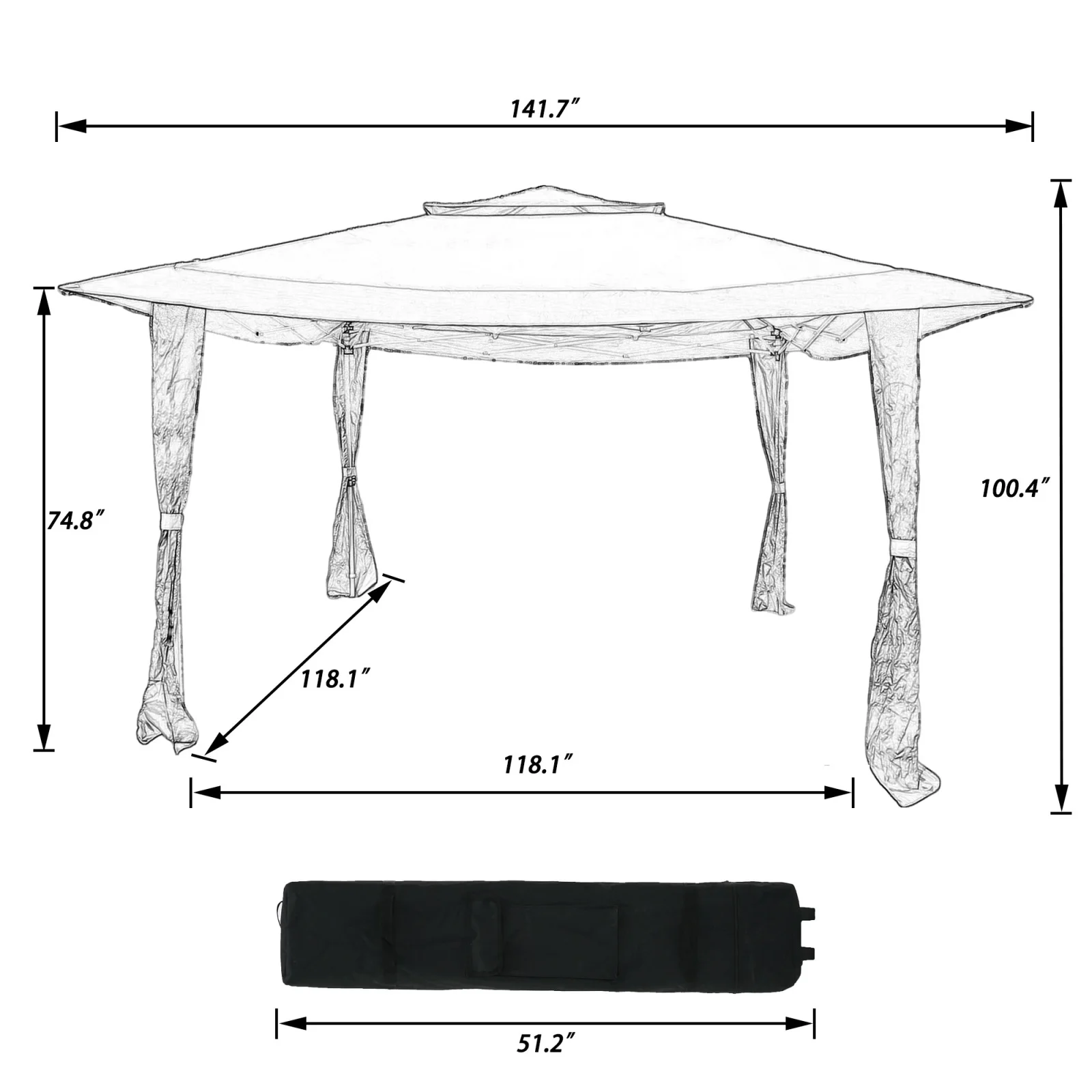 Product Name: 屋外12x12フィートは、140平方フィートのシェードポータブルを備えたパティオと庭に適したガゼボテントを見ますキャリーバッグ付き-茶色
