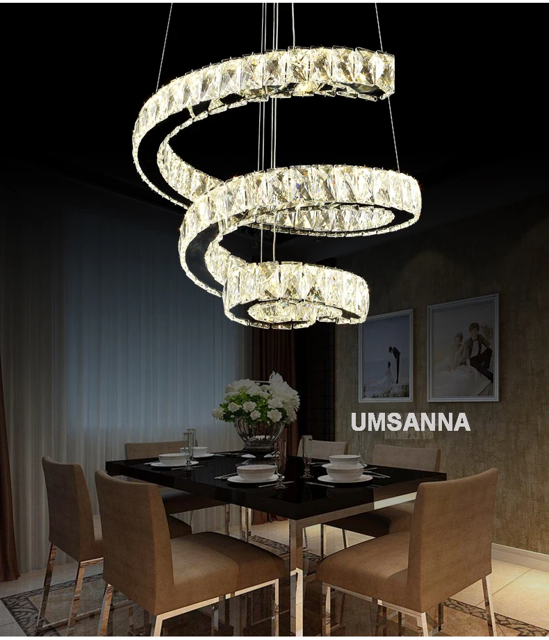 Product Name: Led調光可能なペンダントランプk9クリスタル現代のペンダントライトフィクス高級スパイラル3色変え吊りランプ家の照明